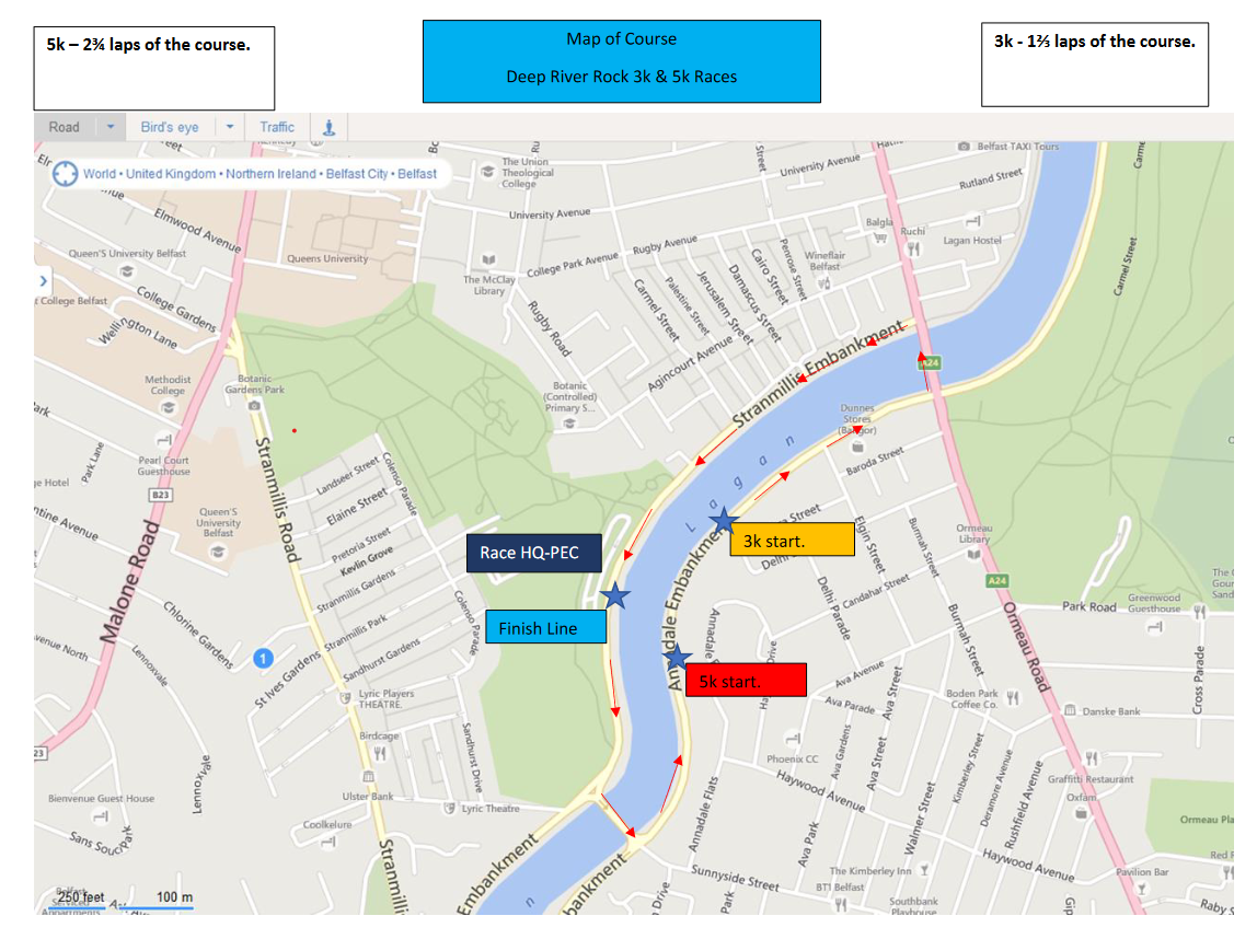 All races start on the Annadale Embankment and finish outside the PEC gates on the Stranmillis Embankment. The course follows a loop along both Embankments between the Ormeau and King’s Bridges.